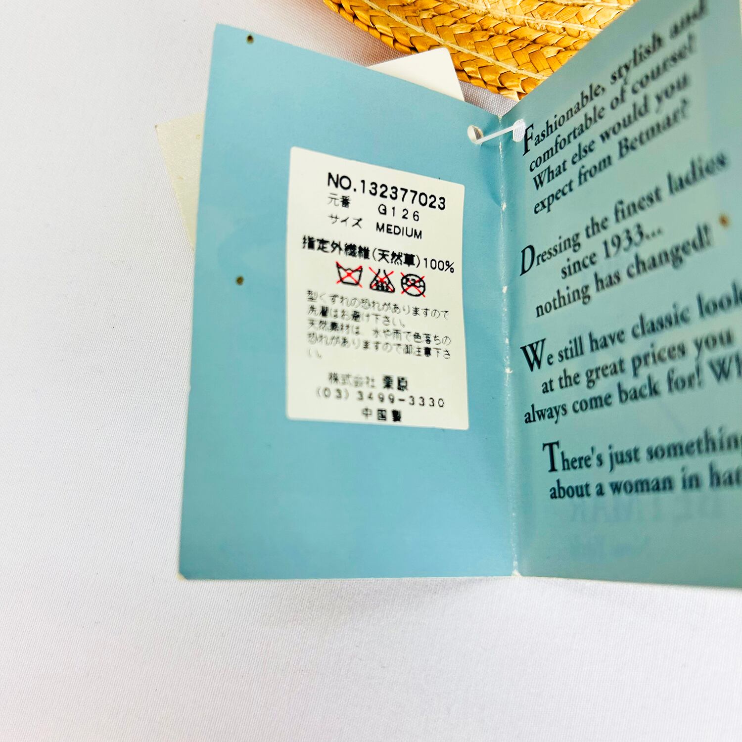麦わら帽子 BETMAR New York レディース 筒状 Mサイズ ブルー 爽やか 天然草