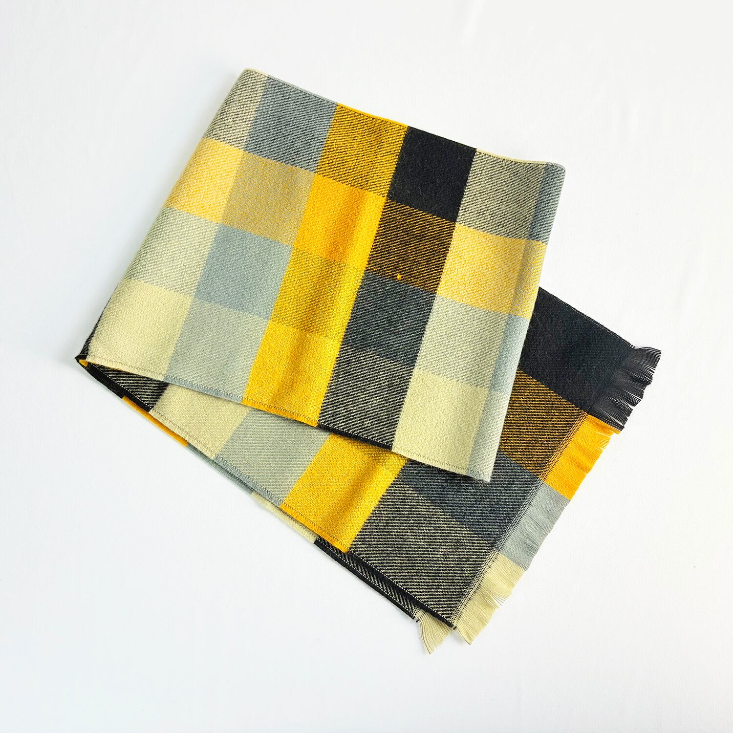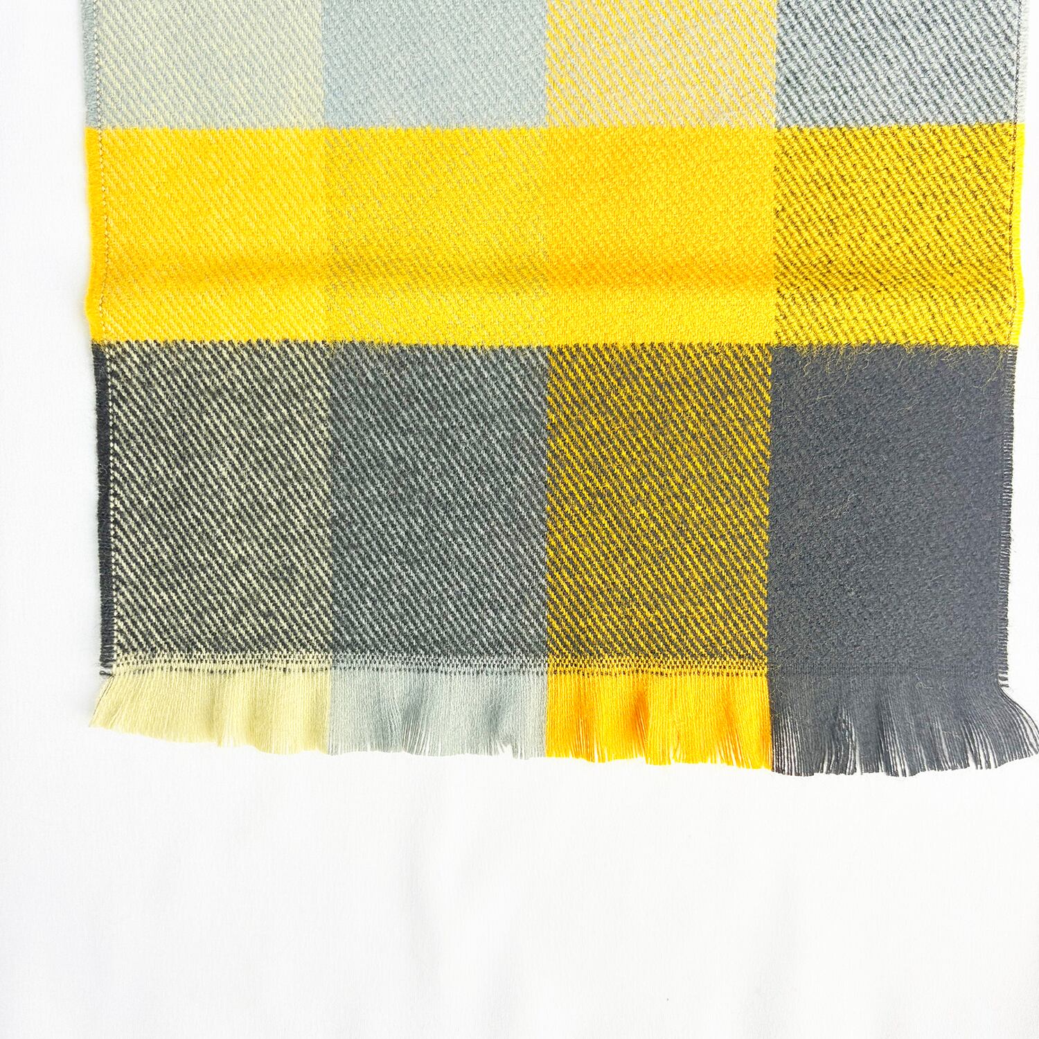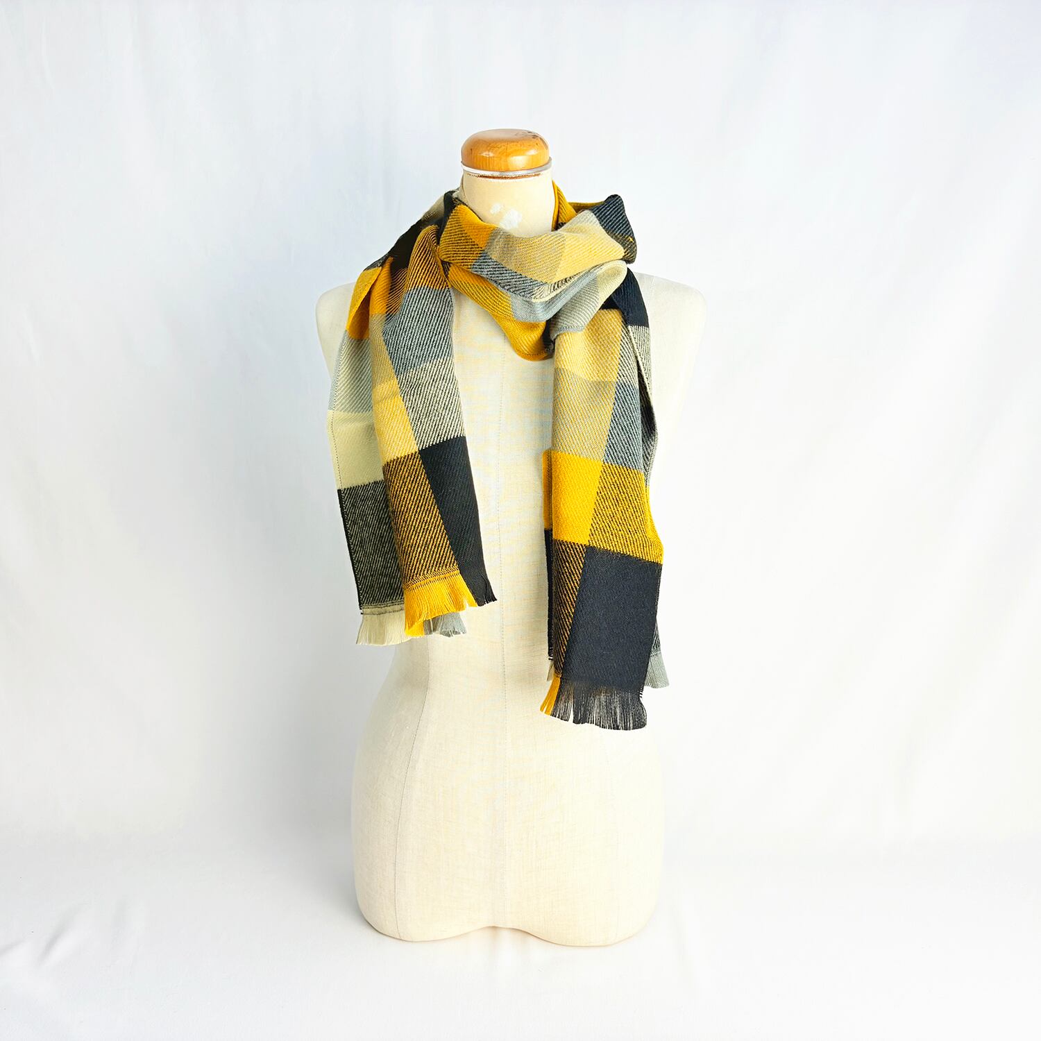 ファッションのアクセントになるイエローカラーのチェック柄マフラーになります。重くなりがちな冬コーデにアクセントを演出してくれます。